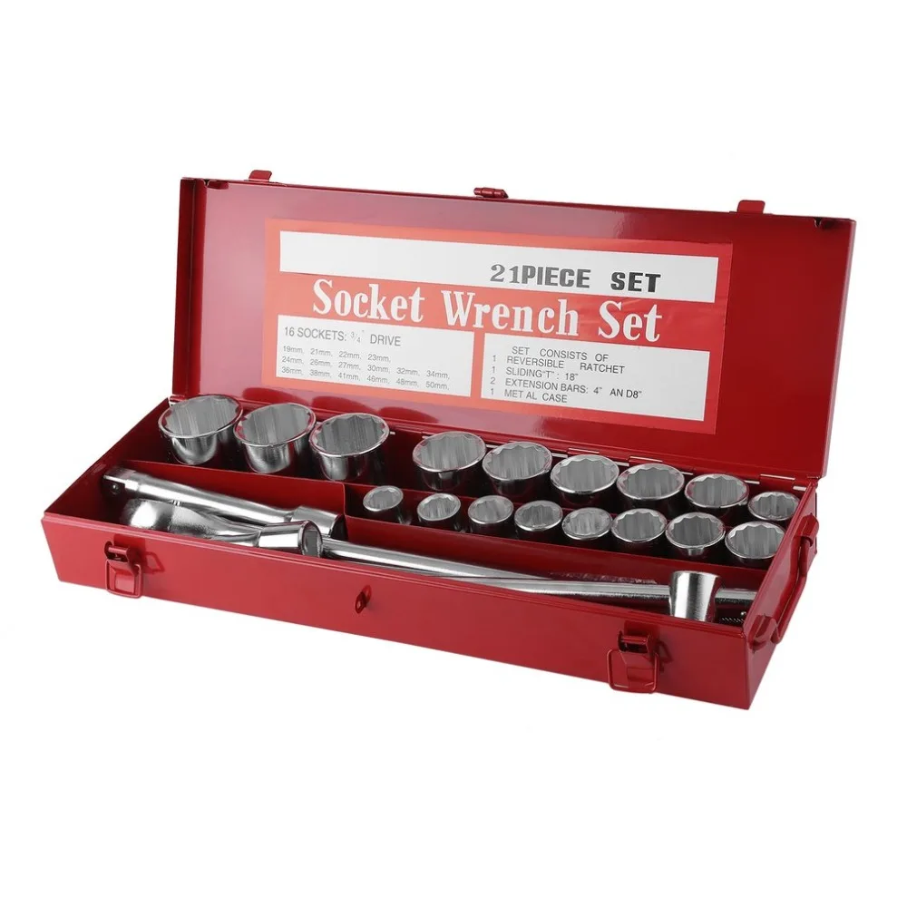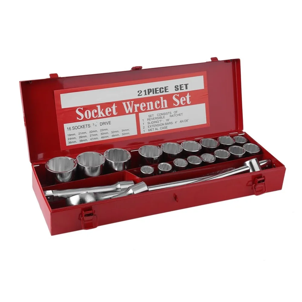 Kopen Goedkoop 21 STKS Zware Metric 3 4 Inch Socket Tool Bit Set Drive Wrench Omkeerbare Ratel Sliding T handvat Met Metal Case J28C30 Online.