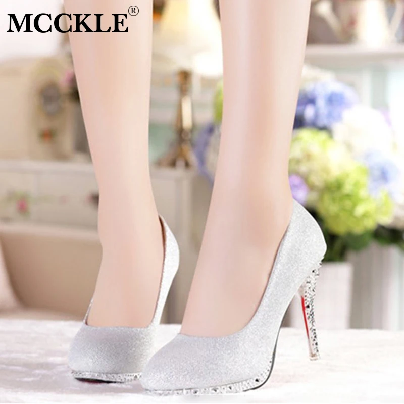 Goede Koop MCCKLE Kristal Vrouwen Sexy Hoge Hakken Bruiloft Pompen Dames Ondiepe Slip On Rhinestone Glitter Schoenen Vrouwelijke Mode Schoenen Goedkoop