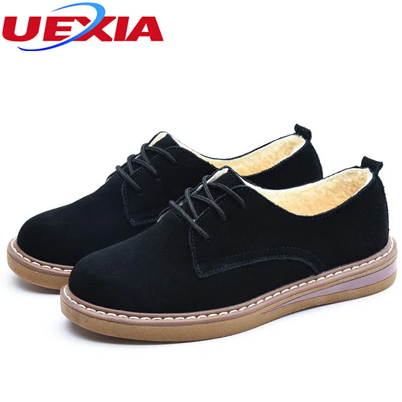Beste Koop UEXIA Nieuwe Vrouwen Mode instappers Suede Casual Schoenen Met Winter Warm bont Pluche Loafers Bont Slip Op Flats Ronde Neus Slip Op Dames Goedkoop