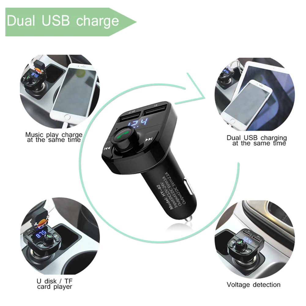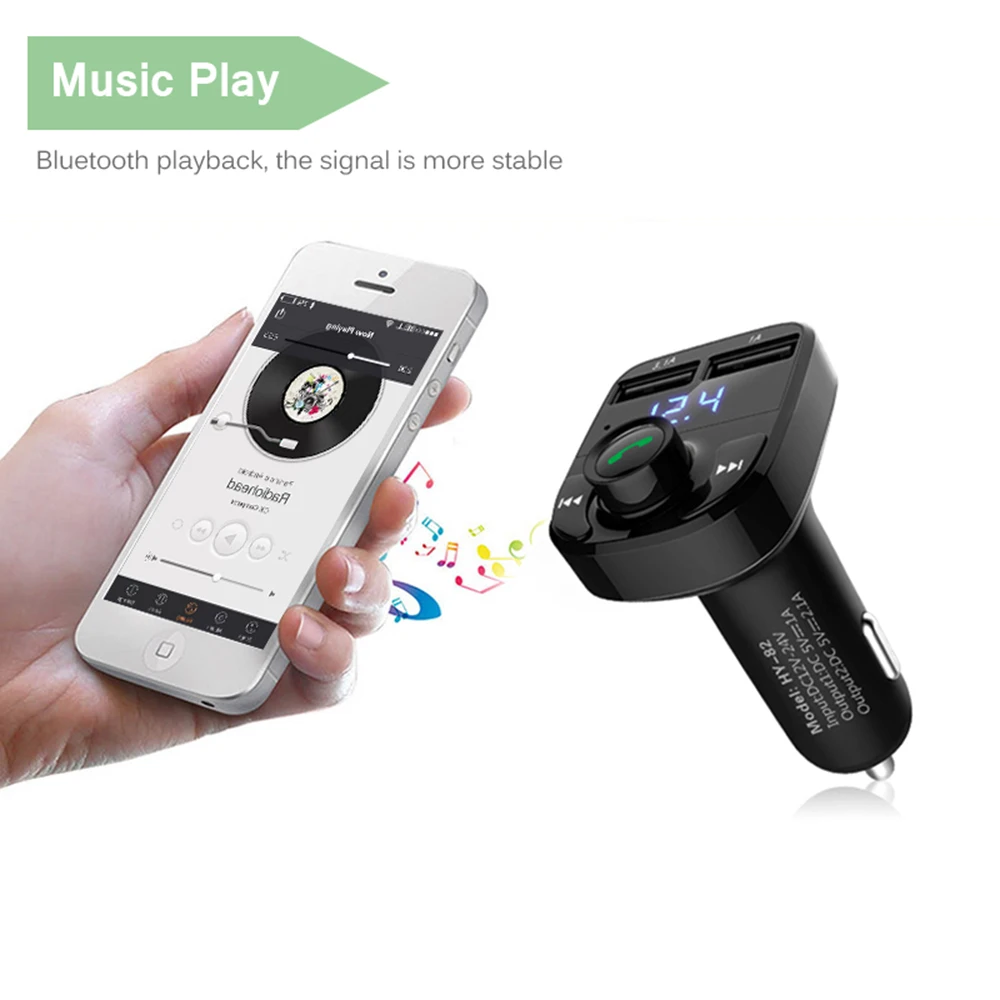 Goede Koop Powstro 5 V 4.1A Dual autolader met Carkit Bluetooth Mp3 speler handsfree Call Draadloze Fm zender TF Slot Voltage Goedkoop.