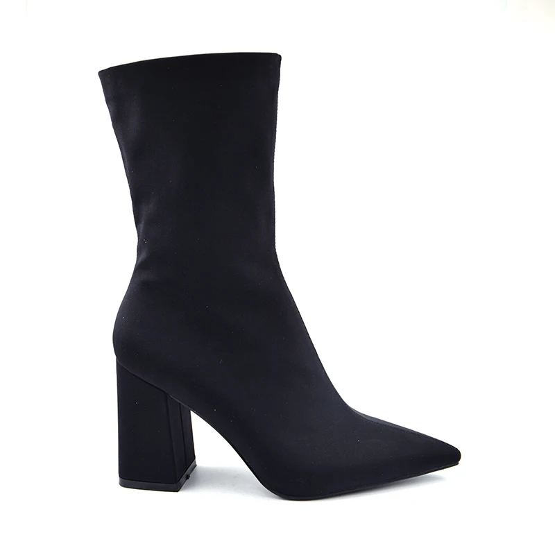 Beste Koop Vrouw bootsFemale Mode Stretch Stof Wees Teen Slanke Enkellaars 2017 Dames Slip Op Hoge Hak Sexy Zwart Plus Size schoenen Goedkoop
