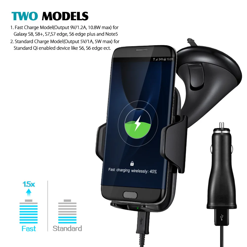 Beste Kopen Qi Autohouder Telefoon Snelle Draadloze Autolader Draadloze Quick Charger Voor Samsung S8 S7 S6 Rand Plus Iphone 8 x Opladen Stand Goedkoop.