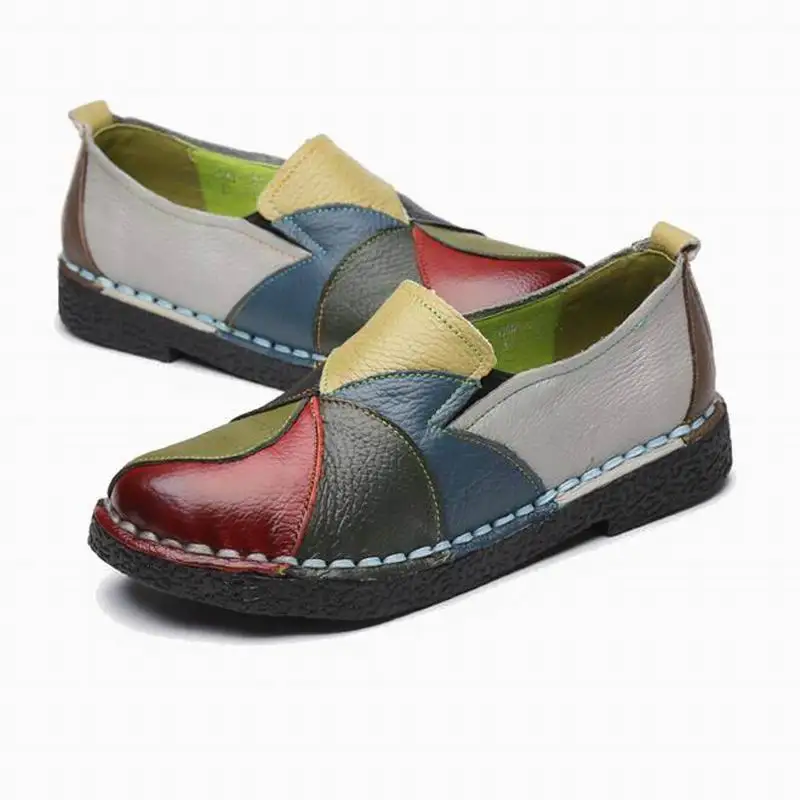 Kopen Goedkoop TIMETANG Echt leer vrouwen schoenen gemengde kleuren herfst slip op casual schoenen vrouwen loafers vintage platte schoenen vrouw C166 Online