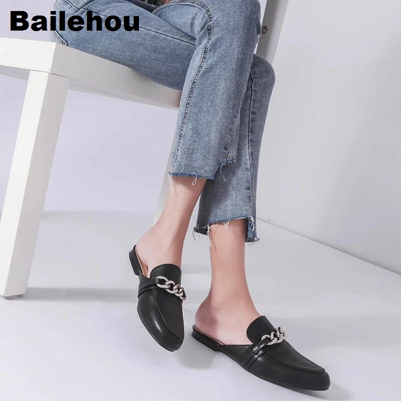 Beste Kopen Bailehou Vrouwen Platte Slippers Slip Op Muilezels Vrouwen Casual Loafers Brand Keten Britse Schoenen Platform Sandalen Chaussure Big Size 41 Goedkoop.