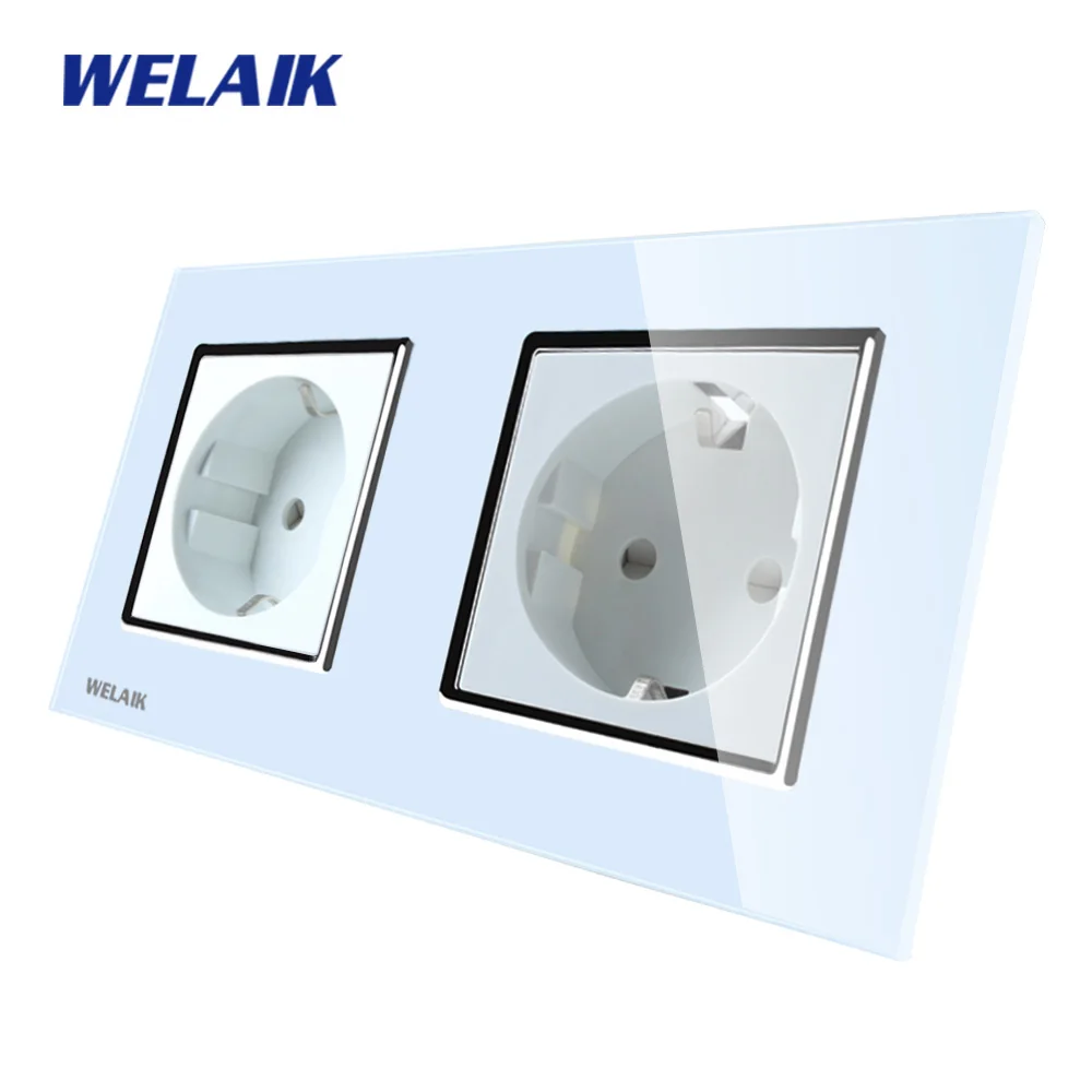 Kopen Goedkoop WELAIK Merk Glas Panel Stopcontact Muur Wit Zwart Europese Standaard Stopcontact AC110 ~ 250 v A28E8EW B Prijs.