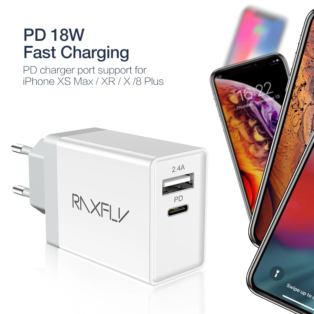 Goede Koop RAXFLY 18 w Type C PD Telefoon Oplader Voor iPhone XS Max XR 8 Plus Dual Poorten Snelle USB Charger voor Samsung S8 Huawei Xiaomi Telefoon Goedkoop.