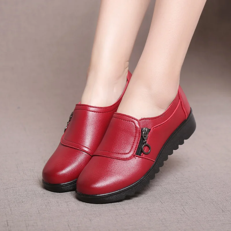 Beste Kopen ZZPOHE Nieuwe Herfst Damesschoenen Mode Casual Vrouwen Lederen Schoenen Dames Slip Op Comfortabele Plus Size werkschoenen gratis verzending Goedkoop.