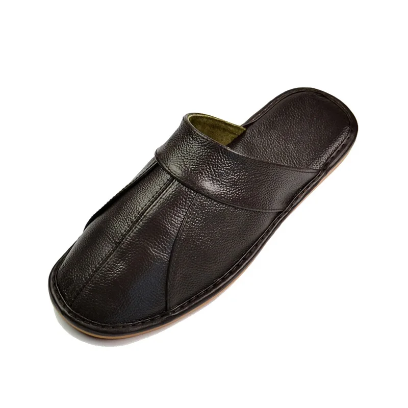 Beste Kopen Mntrerm Lente Slip Op Mannen Slippers Zachte Comfortabele 100% Koe Lederen Handgemaakte Steken Bruin Lederen Schoenen Goedkoop.