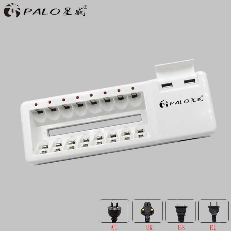 Beste Kopen Nieuwe 8 Slots Quick Charge Charger 2 USB Socket Hoge Kwaliteit Batterij Lader Voor NI CD NI MH AA AAA Oplaadbare Batterijen Goedkoop