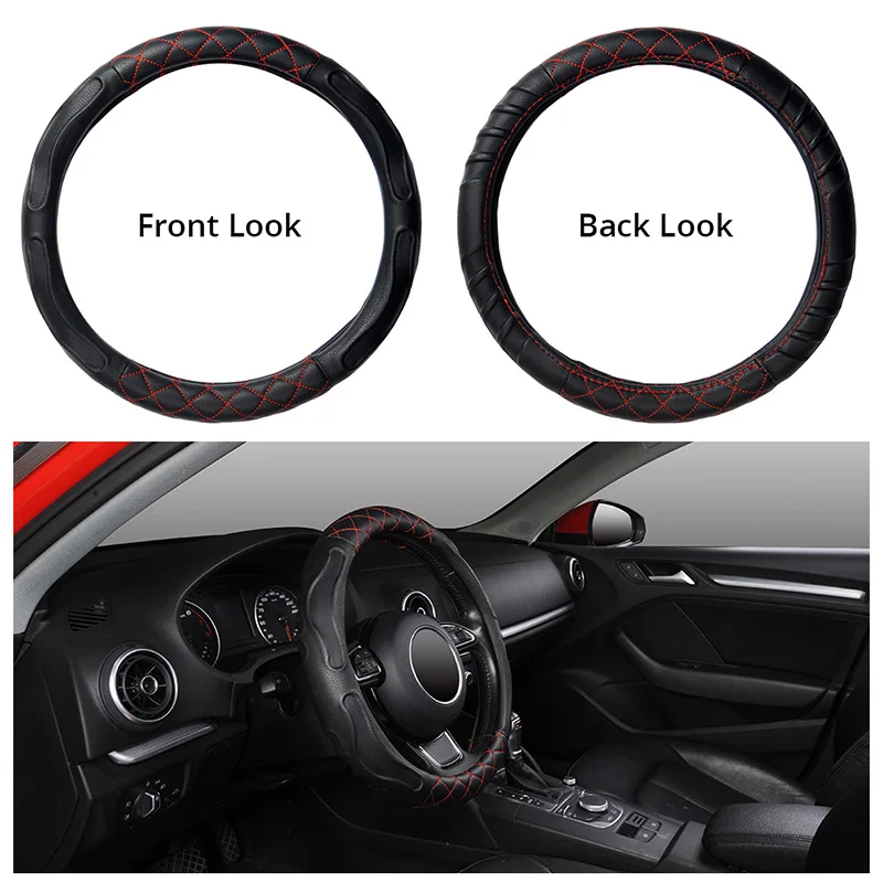 Beste Koop Mode Stijl Auto Stuurwiel Covers Comfortabel en Non Slip Lychee Patroon PU Lederen Stuurwiel Accessoires Geurloos Goedkoop.
