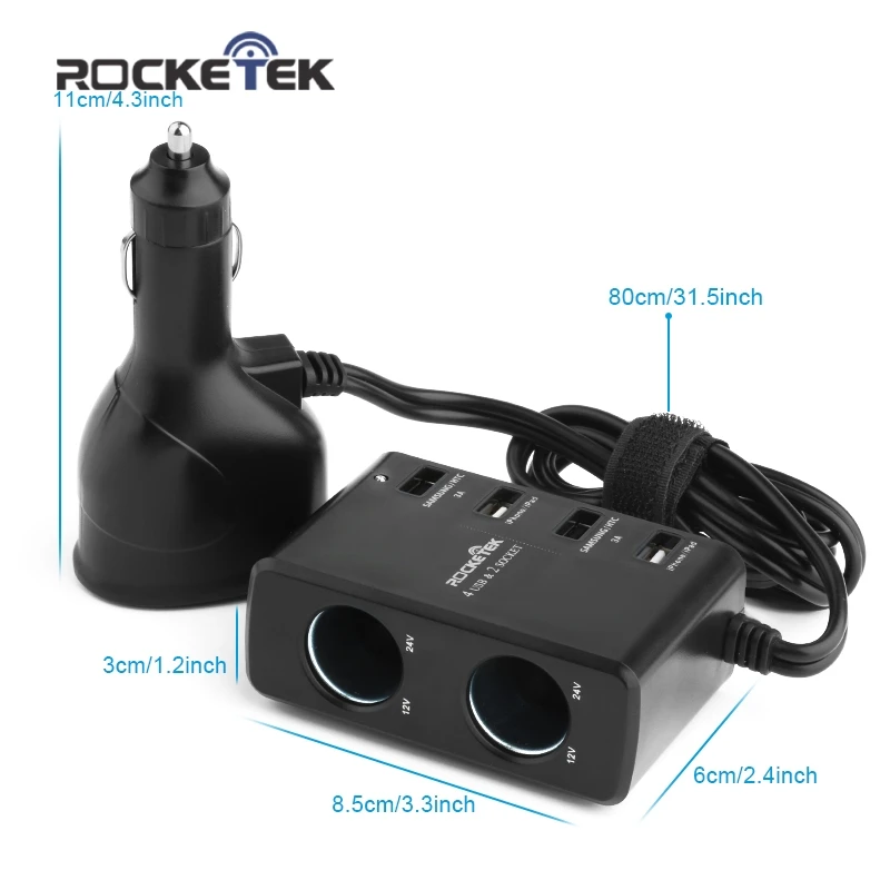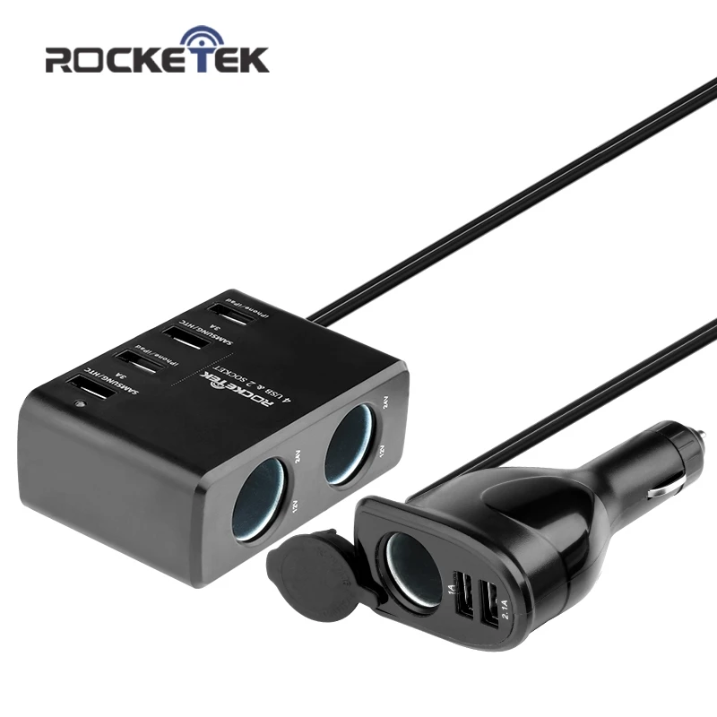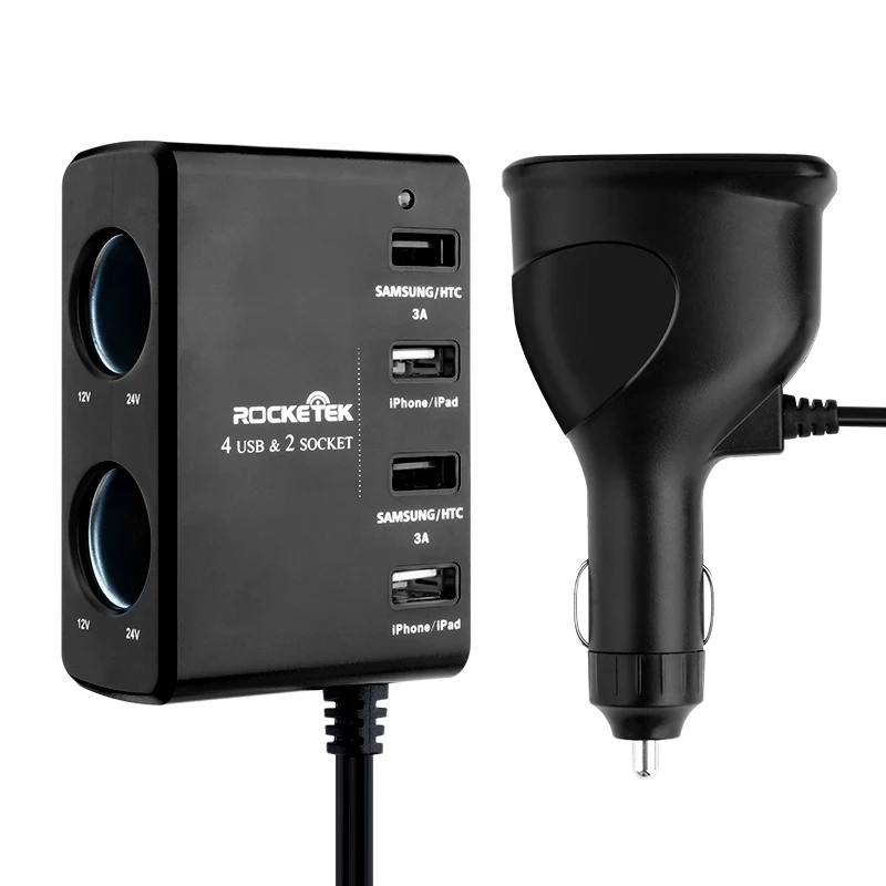 Beste Kopen Rocketek multi usb autolader smart IC 4 USB 6A 2 Socket Sigarettenaansteker telefoon adapter accessoires voor samsung auto charger Goedkoop.