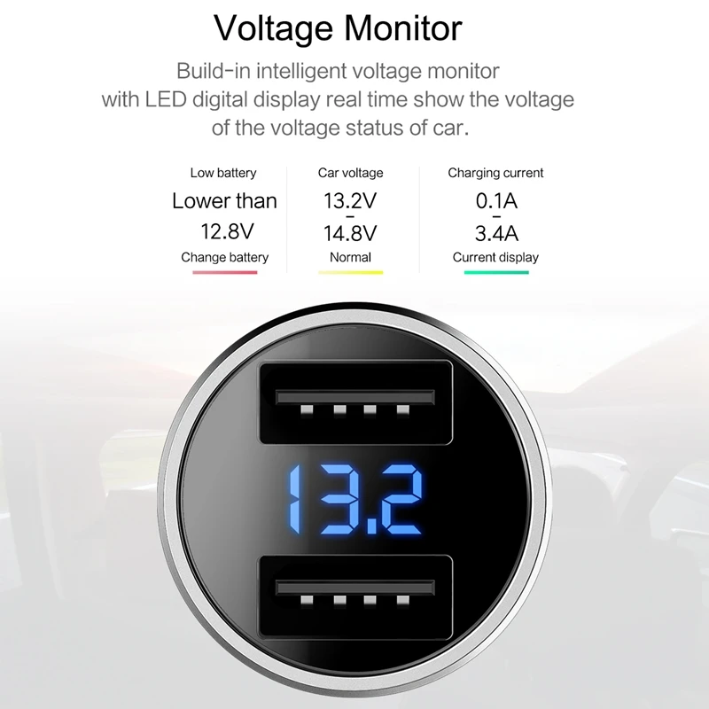 Kopen Goedkoop 5V3. 4A Digitale Display Autolader, ROCK Screen Digitale Uitlezing Dual USB Auto Oplader 2 poorten auto telefoon oplader Online